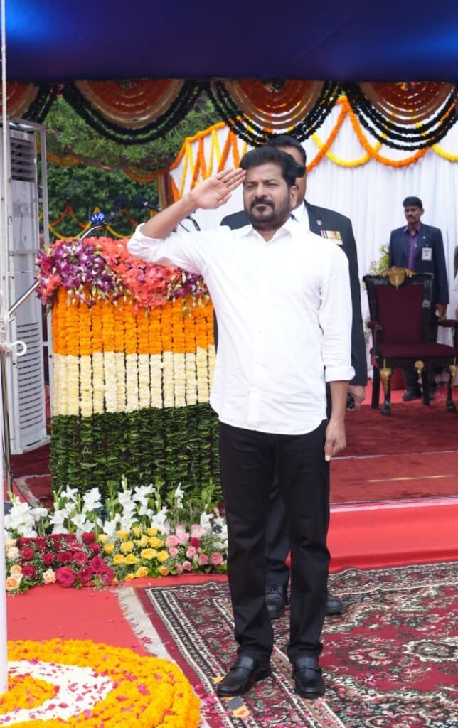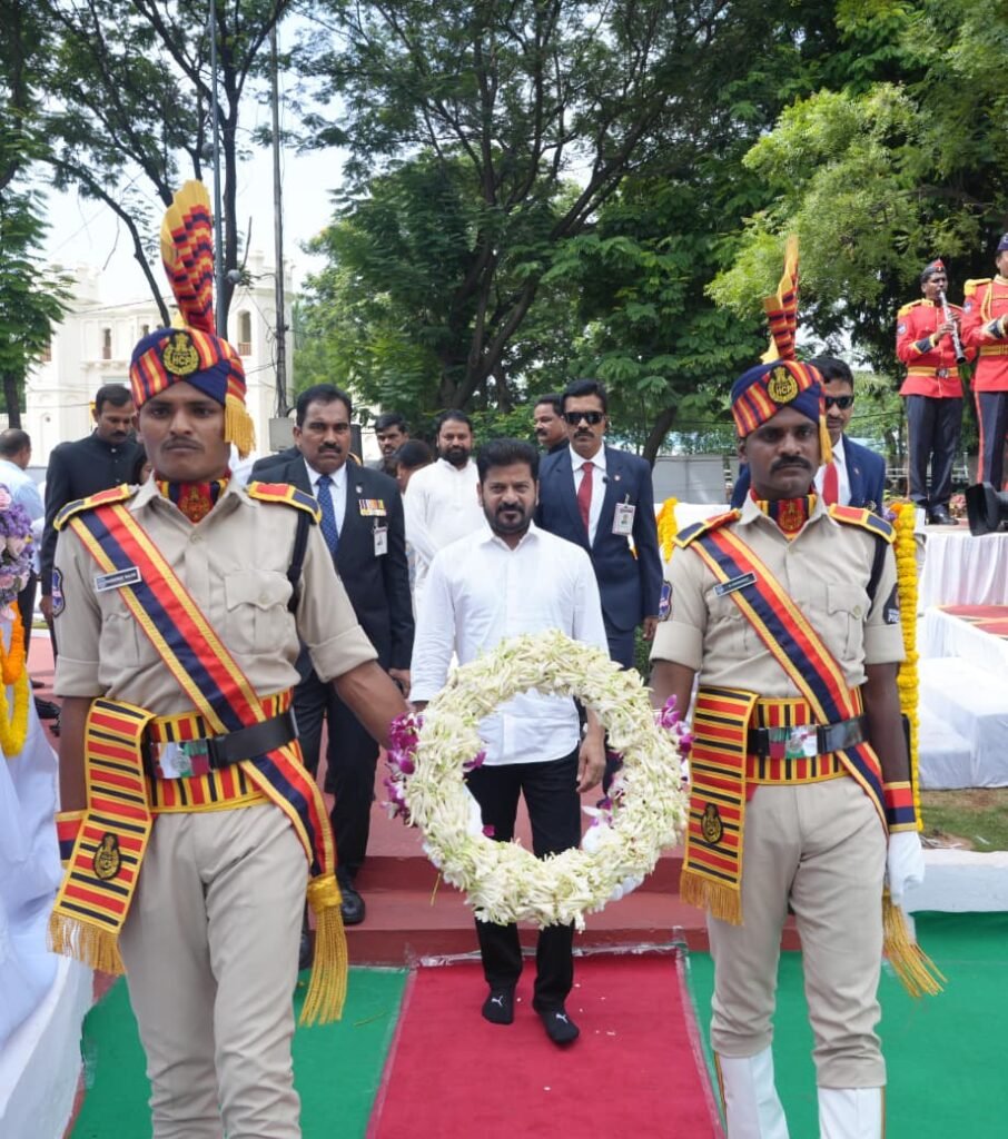 హైదరాబాద్, సెప్టెంబర్ 17 : స్వేచ్ఛ, సమానత్వం, సామాజిక న్యాయం విషయంలో కూడా తెలంగాణ దేశానికి రోల్ మోడల్ గా ఉంటుందని తెలంగాణ ముఖ్యమంత్రి ఏ. రేవంత్ రెడ్డి స్పష్టం చేశారు. ప్రజాపాలన దినోత్సవం కార్యక్రమంలో తెలంగాణ ముఖ్యమంత్రి రేవంత్ రెడ్డి మాట్లాడారు. తొలుత ఆయన అమరవీరుల స్తూపం వద్ద నివాళులు అర్పించారు. అనంతరం పబ్లిక్ గార్డెన్స్ లో ఏర్పాటైన కార్యక్రమంలో ప్రసంగించారు. సెప్టెంబర్ 17 వ తేదీ విశిష్టతను వివరిస్తూ, ఆయన ప్రసంగం సాగింది. ఆయన ప్రసంగం ఆయన మాటల్లోనే…