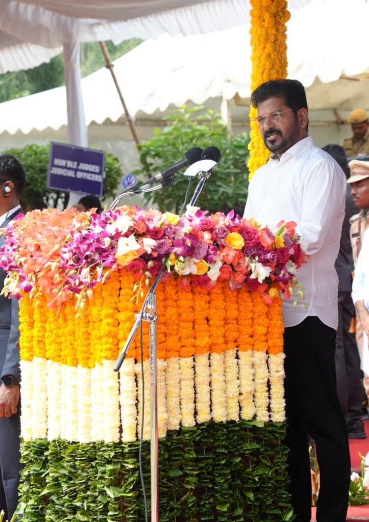 77 ఏళ్ల తెలంగాణ ప్రస్థానాన్ని, పోరాట చరిత్రను, ఇక్కడ ఉద్భవించిన ఉద్యమాల సరళిని సంపూర్ణంగా ఆకళింపు చేసుకుని, ప్రజల ఆకాంక్షలను అర్థం చేసుకుని మేం ఈ రోజు పరిపాలన చేస్తున్నాం. అహంకారపు ఆలోచనలు, బంధు ప్రీతి, ఆశ్రిత పక్షపాతానికి మా పాలనలో తావు లేదు. కష్టమైనా, నష్టమైనా ప్రజలతో పంచుకుంటున్నాం. ప్రజల ఆకాంక్షలు, వారి ఆలోచననే ప్రమాణికంగా నిర్ణయాలు తీసుకుంటున్నాం. తీసుకున్న నిర్ణయాలలో మంచి చెడులను విశ్లేషించే అవకాశం ఇస్తున్నాం. తప్పులుంటే దిద్దుకుంటున్నాం. మంచి చేయడమే బాధ్యతగా భావిస్తున్నాం. అభివృద్ధిలో ప్రపంచంతో పోటీ పడాలన్న తపనతో పని చేస్తున్నాం. ప్రతి పేదవాడి ముఖంలో ఆనందమే లక్ష్యంగా సంక్షేమ చరిత్రను తిరగ రాస్తున్నాం.