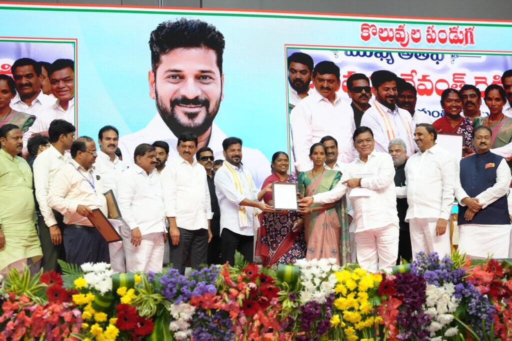 Speaking after handing over appointment letters to Grama Palana Officers (GPOs) at ‘ Koluvula Panduga”, the Chief Minister said that KCR government launched Dharani portal and gobbled up costly lands across the state. Unable to find a solution on his land ownership, a fed-up farmer staged a protest at a Revenue department office in Ibrahimpatnam and also set an official on fire by pouring petrol on him. In another instance, a victim threw Mangalasutra at the officials in Sircilla. The unrest that exploded from the people was the result of the Dharani ‘virus’ created by the previous rulers and not the officials, the CM charged.