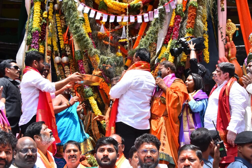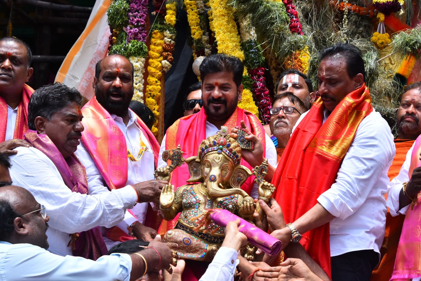 The CM congratulated the Festival Committee of Khairatabad Ganesh Idol for organising the festivities in a grandeur for the last 71 years. “Hyderabad stands as a symbol of religious harmony by respecting all faiths”, the Chief Minister said that