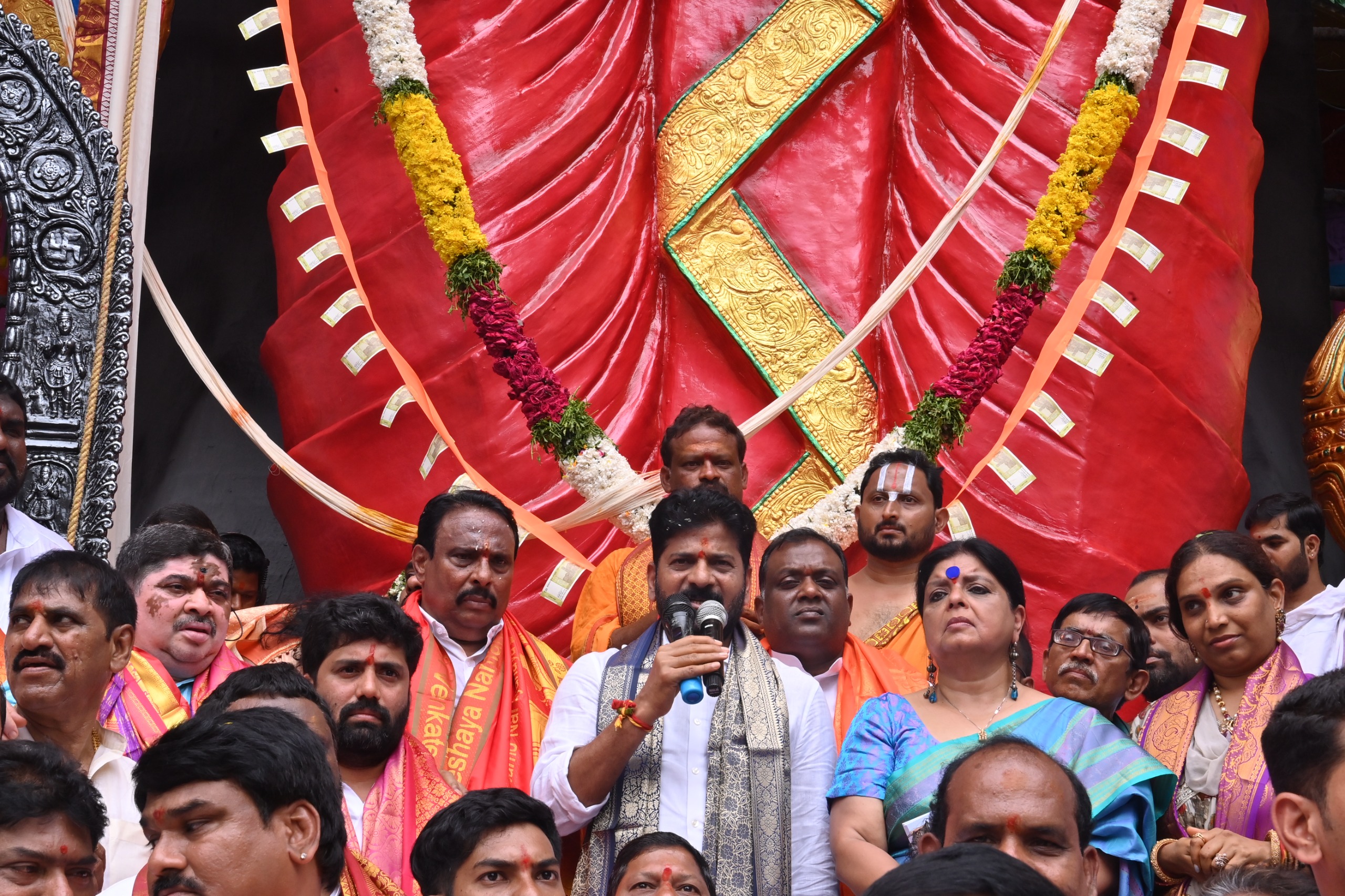 హైదరాబాద్, సెప్టెంబర్ 07 : ఖైరతాబాద్ గణేశ నవరాత్రి ఉత్సవాలను ఉత్సవ కమిటీ దేశంలోనే అత్యంత గొప్పగా నిర్వహిస్తోందని తెలంగాణ ముఖ్యమంత్రి రేవంత్ రెడ్డి చెప్పారు. శనివారం ఉదయం ఆయన ఖైరతాబాద్ మహాగణపతి తొలి పూజలో పాల్గొన్నారు. ఈ సందర్భంగా ముఖ్యమంత్రి మాట్లాడారు. గణేశ మండపాలకు ప్రభుత్వం ఉచితంగా ఇస్తున్నట్లు ఆయన ప్రకటించారు. సీఎం ప్రసంగం ఆయన మాటల్లోనే..