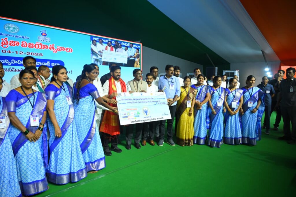 In a scathing attack on KCR for neglecting the women empowerment, CM Revanth Reddy said that his government spent Rs 8100 crore for free bus travel for women, made women groups as the owners of 1000 RTC buses, running petrol pumps, distributing one crore Indiramma sarees to 65 lakh self-help groups. Our aim is to promote one crore women as millionaires.,” State will flourish when women are happy. The State was already receiving bountiful rains and crops.”