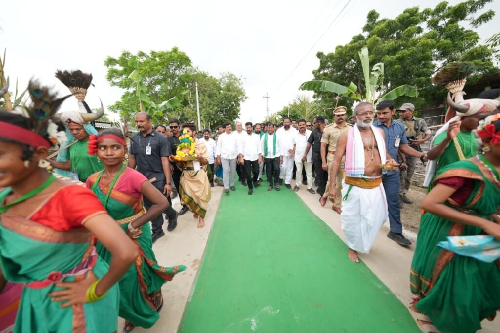 CM Revanth Reddy addresses a public meeting at Damacharla in Bhadradri Kothagudem district today