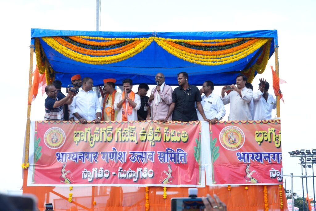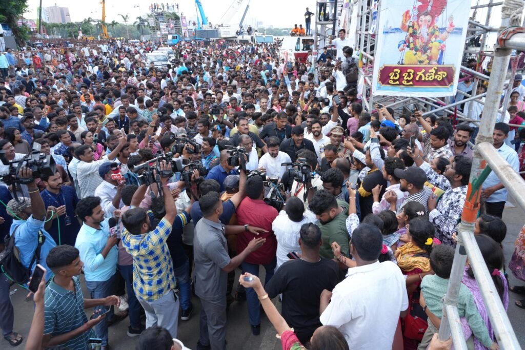అక్కడే ఖైరతాబాద్ గణేశ ఉత్సవ కమిటీ వేదికపైకి వెళ్లారు. గణపతి బప్పా మోరియా అంటూ నినదించారు. మాట్లాడాలంటూ ఉత్సవ కమిటీ చేసిన వినతిని సున్నితంగా తిరస్కరించారు. ఇది మాట్లాడే సందర్భం కాదన్నారు.