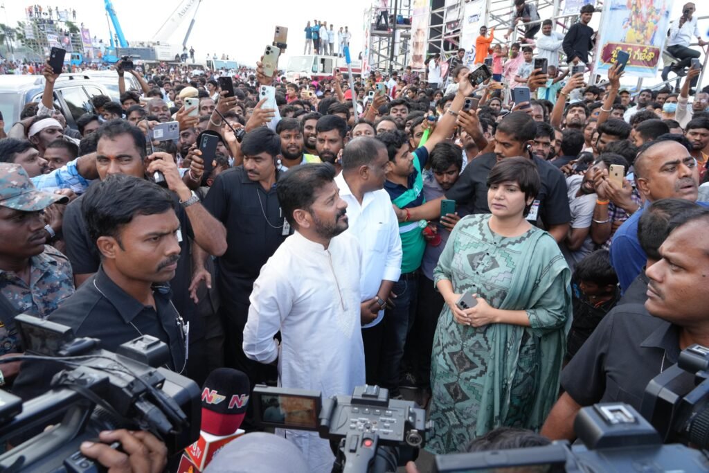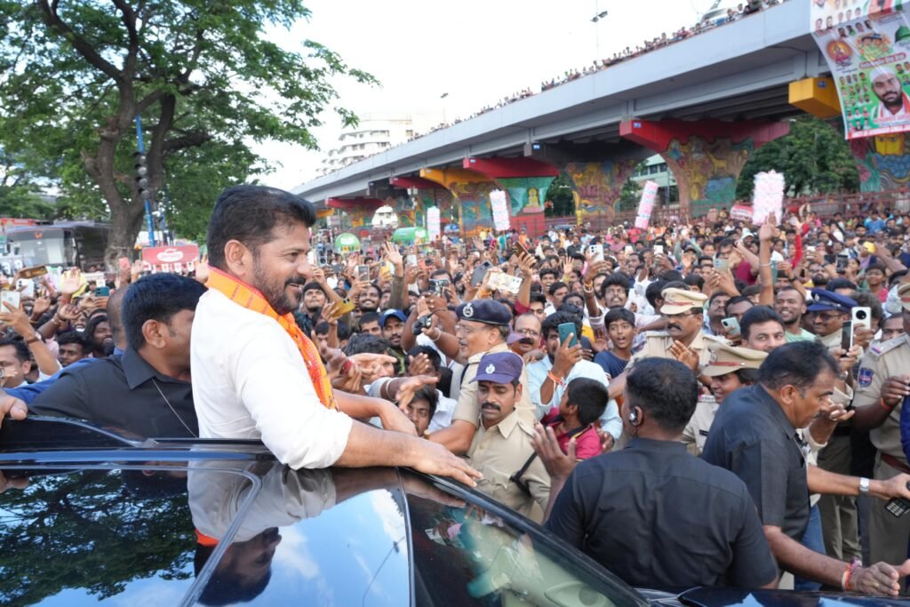ఒక ముఖ్యమంత్రి సాధారణ జనంలో కలిసిపోయి తిరగడం మామూలు విషయం కాదు. దాదాపు నలభై ఐదేళ్ల క్రితం అంటే 1985 లో ఎన్.టి. రామారావు ఇలా వచ్చేశారు. సాధారణ సందర్భంలో అయితే సరే. కానీ, గణేశ నిమజ్జన సమయంలో జనంలోకి వెళ్లిపోవడం అసాధారణమైన పని. ఎన్.టి.ఆర్. తరవాత ఇప్పుడు తెలంగాణ ముఖ్యమంత్రి రేవంత్ రెడ్డి ఆ పని చేశారు. శనివారం గణేశ నిమజ్జన కార్యక్రమం సందర్భంగా రేవంత్ అకస్మాత్తుగా ఎన్.టి.ఆర్. మార్గ్ కి వచ్చేశారు. అతి తక్కువ సెక్యూరిటీతో వచ్చారు. వస్తూనే జనంలో కలిసిపోయారు. సెల్ఫీలు దిగారు. కరచాలనాలూ చేశారు. నిమజ్జనం సాగుతున్న తీరును పరిశీలించారు.
