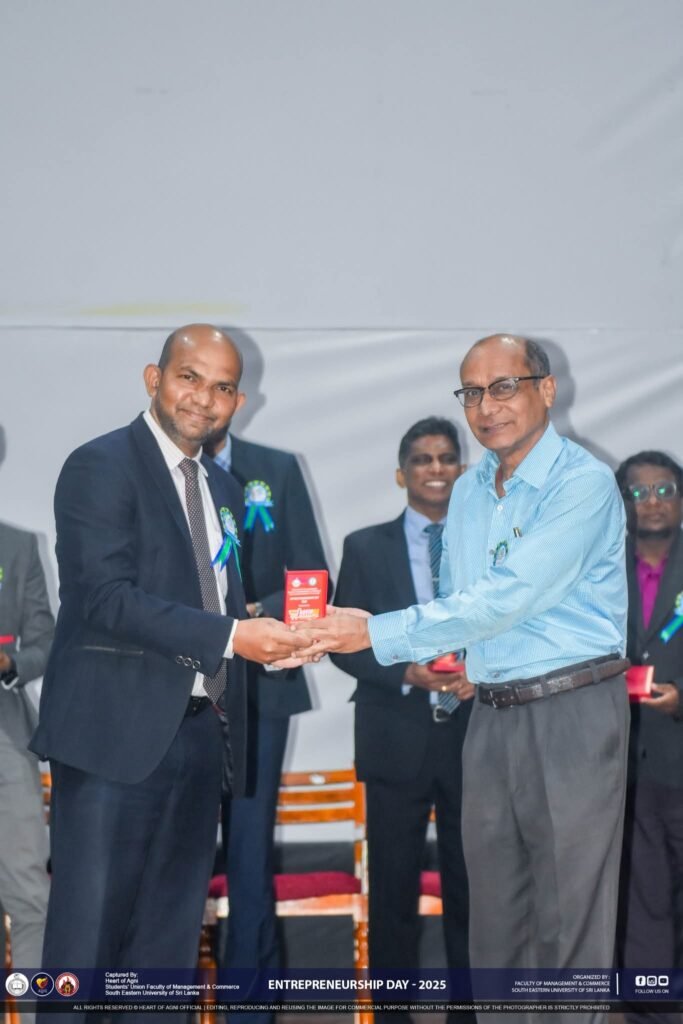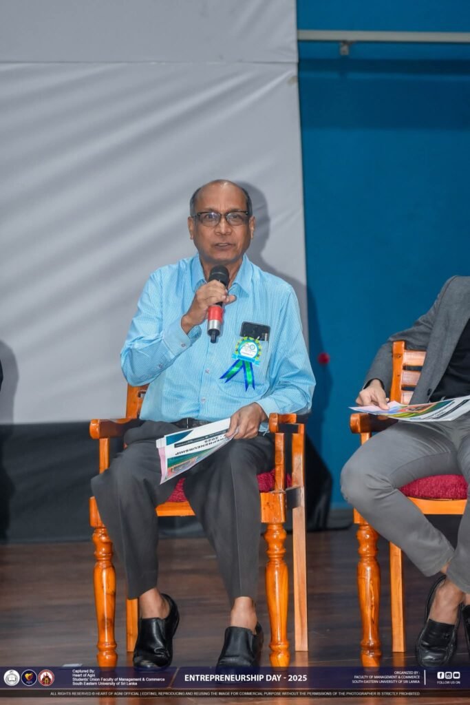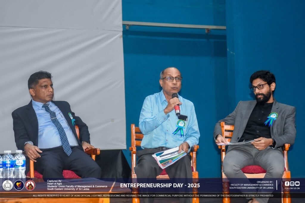 On Entrepreneurship Day, held on September 9, the master of ceremonies was Mr. M.M. Siraj, senior lecturer in Information Technology. Prof. M.A.C. Salfiya, coordinator of the programme welcomed the guests. Prof. A.M.M. Mustafa, Dean, Faculty of Management and Commerce, delivered a special address. He highlighted the importance of such a symposium. In the first panel discussion on “Industry Dialogue,” the moderator of the programme was Dr. I. Raisal, co-coordinator, and in another panel discussion, the moderator was Prof. (Dr). M.I.M. Hilal.